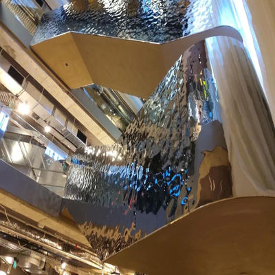 MXL Steel biedt een breed scala aan roestvrijstalen platen en metalen platen, die zijn voorzien van een exclusieve stijl die lijkt op een watergolf effect.en duurzaam, gebruikt in een verscheidenheid aan toepassingen zoals plafonds, wandpanelen, achtergronden, gangen en andere architectonische en decoratieve projecten.Omdat onze watergolfplaten gemaakt zijn van hoogwaardig roestvrij staal met hoge sterkte en weerstand tegen zuur en alkali.Bovendien is het oppervlak behandeld met een spiegelverf en PVD-kleur,en de onregelmatige patronen worden gefabriceerd door het stempproces toe te passen, het reflecterende licht bereikt een uniek effect dat een gevoel van ruimtelijke hiërarchie kan behouden. The water ripple stainless steel sheets not only maintain the original properties of plain stainless less but also provide a stunning design to greatly improve the projects with aesthetics and added value.