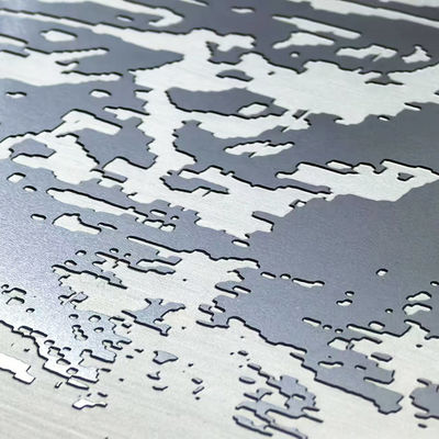 De geëtste patronen worden gecreëerd door selectief een beschermende zuurbestendige film op bepaalde gebieden aan te brengen en de onbeschermde gebieden met zuur te etsen. Het etsen verwijdert een dunne laag roestvrij staal.Verander de kleur naar een dof zilvergrijsDe oppervlakte is ruw en kan worden gecontrasteerd met slijpen, super spiegel of andere afwerkingen om duizenden variaties te creëren.Het werd veel gebruikt voor decoratieve toepassingen., zoals liftdeuren, wandpanelen, coping en trimming.