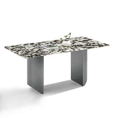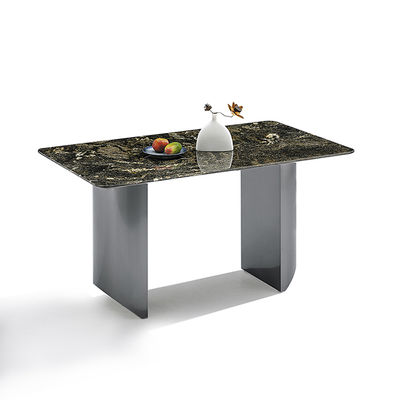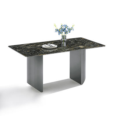 Modern gesinterd stenen tafelblad Zwarte kleur spiegel Roestvrij staal basis Eettafel